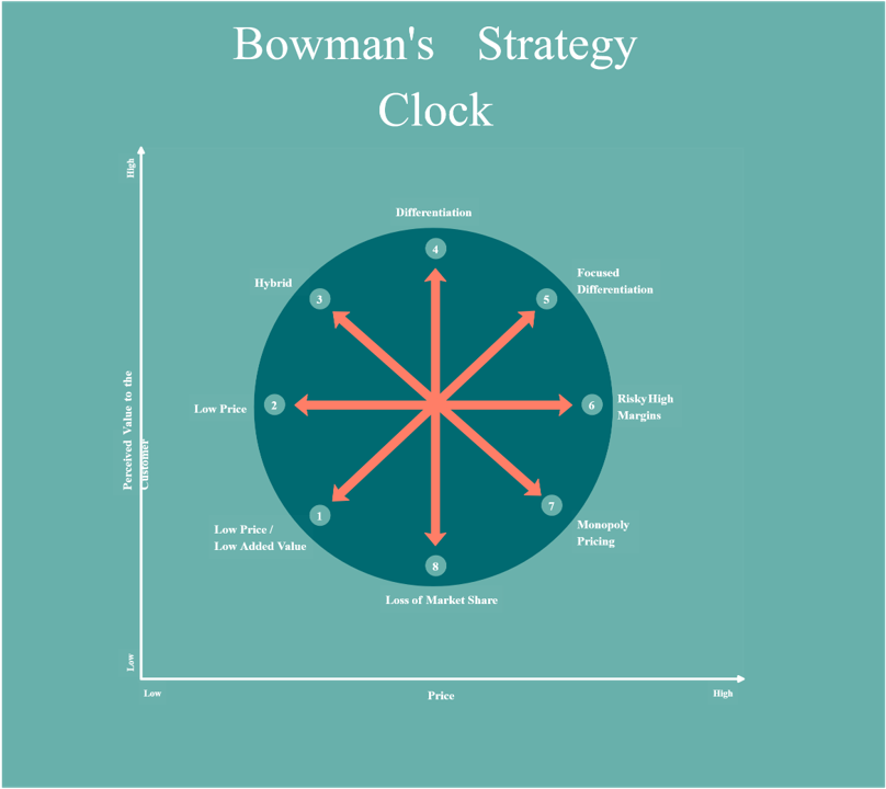 Tags Business Bowman’s Strategy Clock Anar Rupji January 3, 2025 Bowman’s Strategy Clock One-Line Explanation of the Model Bowman’s Strategy Clock is a framework that outlines eight competitive strategies based