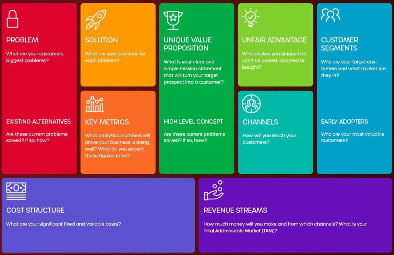 Tags Business Model Lean Canvas Anar Rupji January 3, 2025 Lean Canvas One Line Explanation of the Model The Lean Canvas is a one-page business plan template that helps entrepreneurs